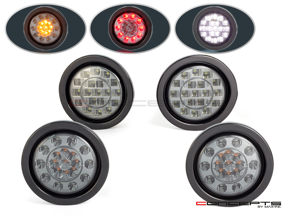 High Quality MAX INC CONCEPTS Super Bright LED Rear Light Set. Featuring a cool smoked lens and a low profile design, these lights are a must have for that special project. Provided in the kit is the correct size hole saw and bullet point connectors for easy DIY installation. To install you simply drill a hole in your panel or fender, then place the rubber ring into the hole and push the light into the center of the rubber ring.