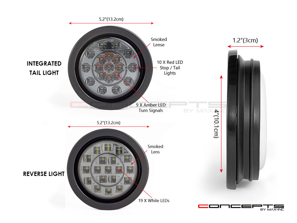 - PACKAGE INCLUDES: 2 X LED REVERSE LIGHTS, 2 X INTEGRATED STOP / TAIL / TURN SIGNAL LIGHTS + HOLE SAW + DIY BULLET CONNECTORS