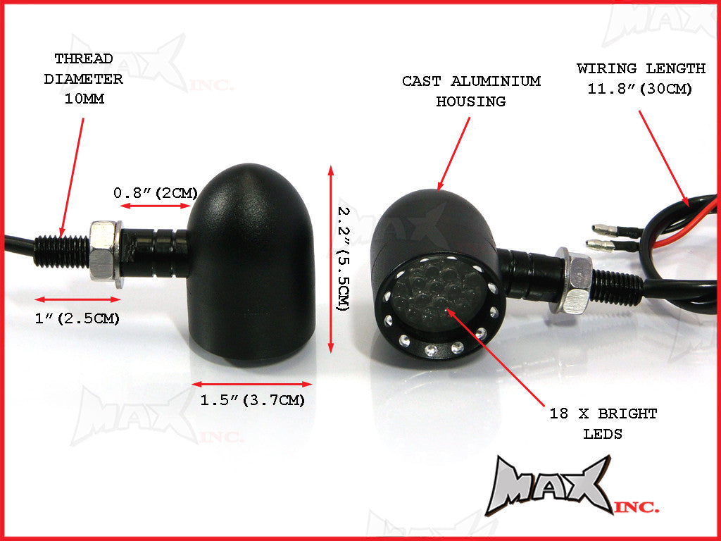 Max Black Aluminium Bobber LED Turn Signals / Indicators