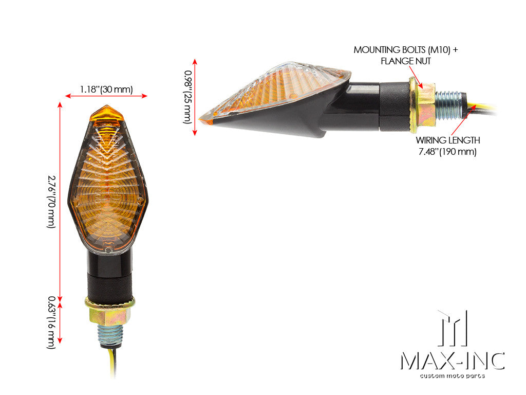Upgrade your motorcycle with these good quality and super bright LED turn signals. They are a perfect fit for Sport Bikes, Cafe Racers, Naked Bikes, Streetfighters, and more.