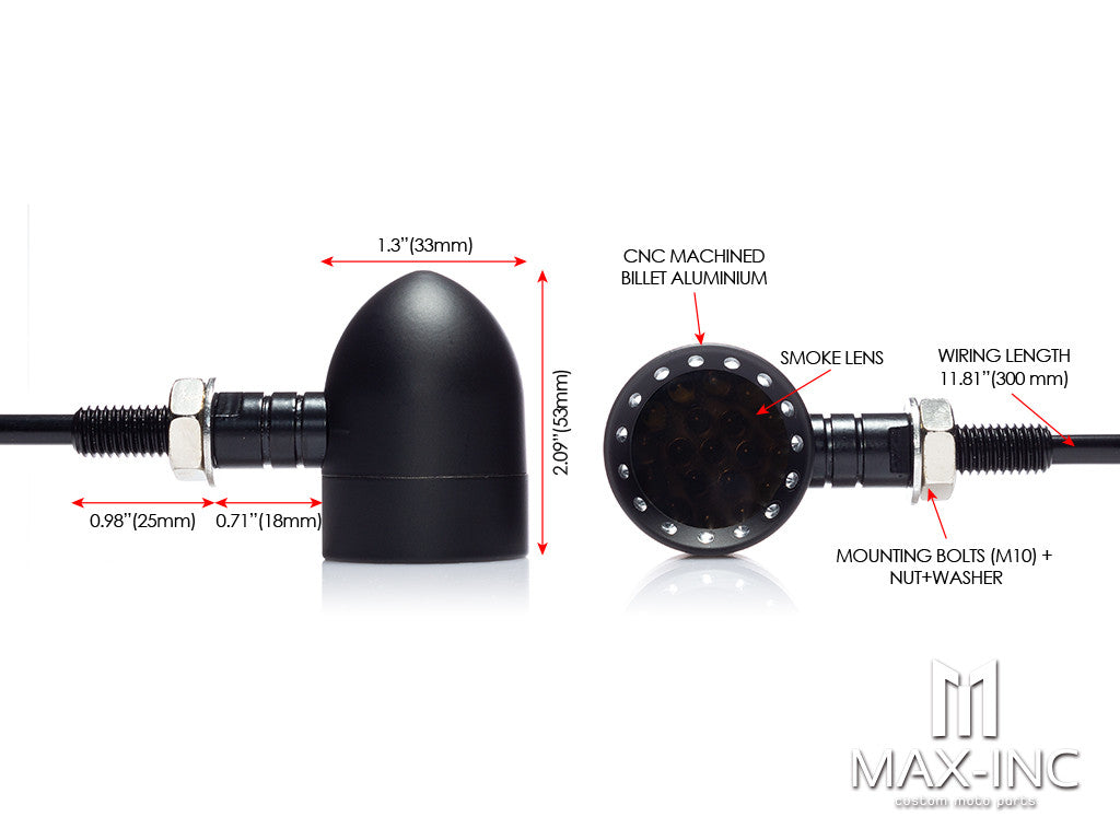 - Package includes: 2 x integrated turn signals