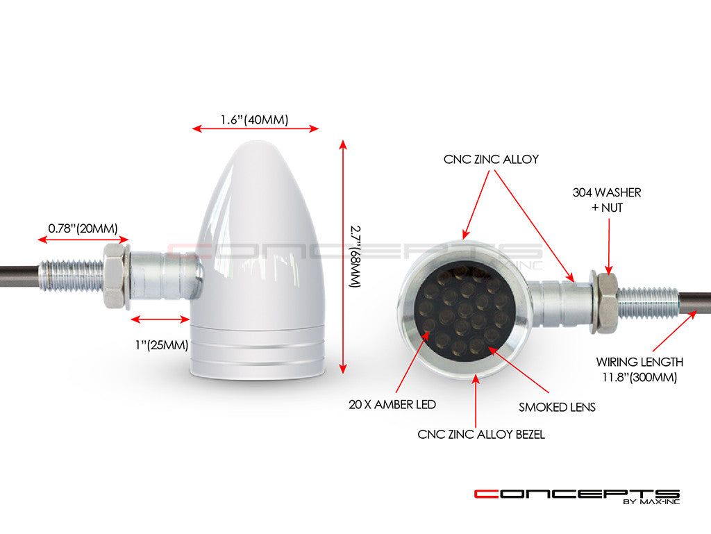 Chrome Aluminium Retro LED Turn Signals / Running Lights