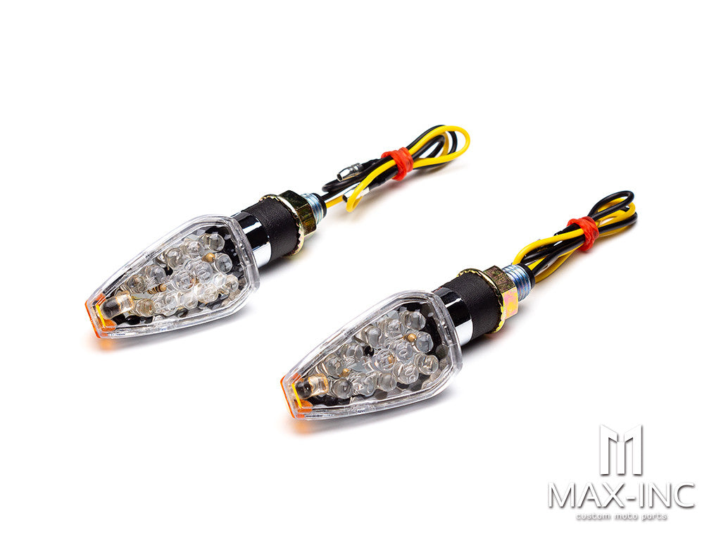 Upgrade your bike's visibility and style with these high-quality universal indicators / turn signals, featuring enhanced LEDs at the tip for visibility from the front and side.