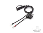 Good quality quick connect harness which allows you to connect your USB or power socket when needed. Connects permanently to your battery and has a waterproof plug on the connector end for protection when your devices are not connected.