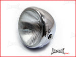 Introducing a stunning classic style headlight featuring a glass lens and full metal housing, perfect for Cafe Racers, Project Bikes, Harley Davidson, Streetfighters, Trikes, Choppers, and more.