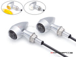 These Integrated LED Turn Signals are CNC machined, super bright and super small. They combine all the functions needed for the front of your motorcycle packed into an all-in-one tiny housing. They feature a Super Bright Dual Color LED Chip covered by a projector lens which magnifies the light. The Dual Colored LED changes color between functions - Amber LED for Turn Signals and White LED for your Daytime Running Lights. These Integrated Turn Signals are our exclusive design and are only available directly through Max Inc and our selected dealers.