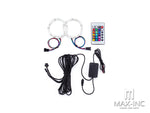 - Package Contents: 2 x Rings, Wiring Harness, and Remote Control